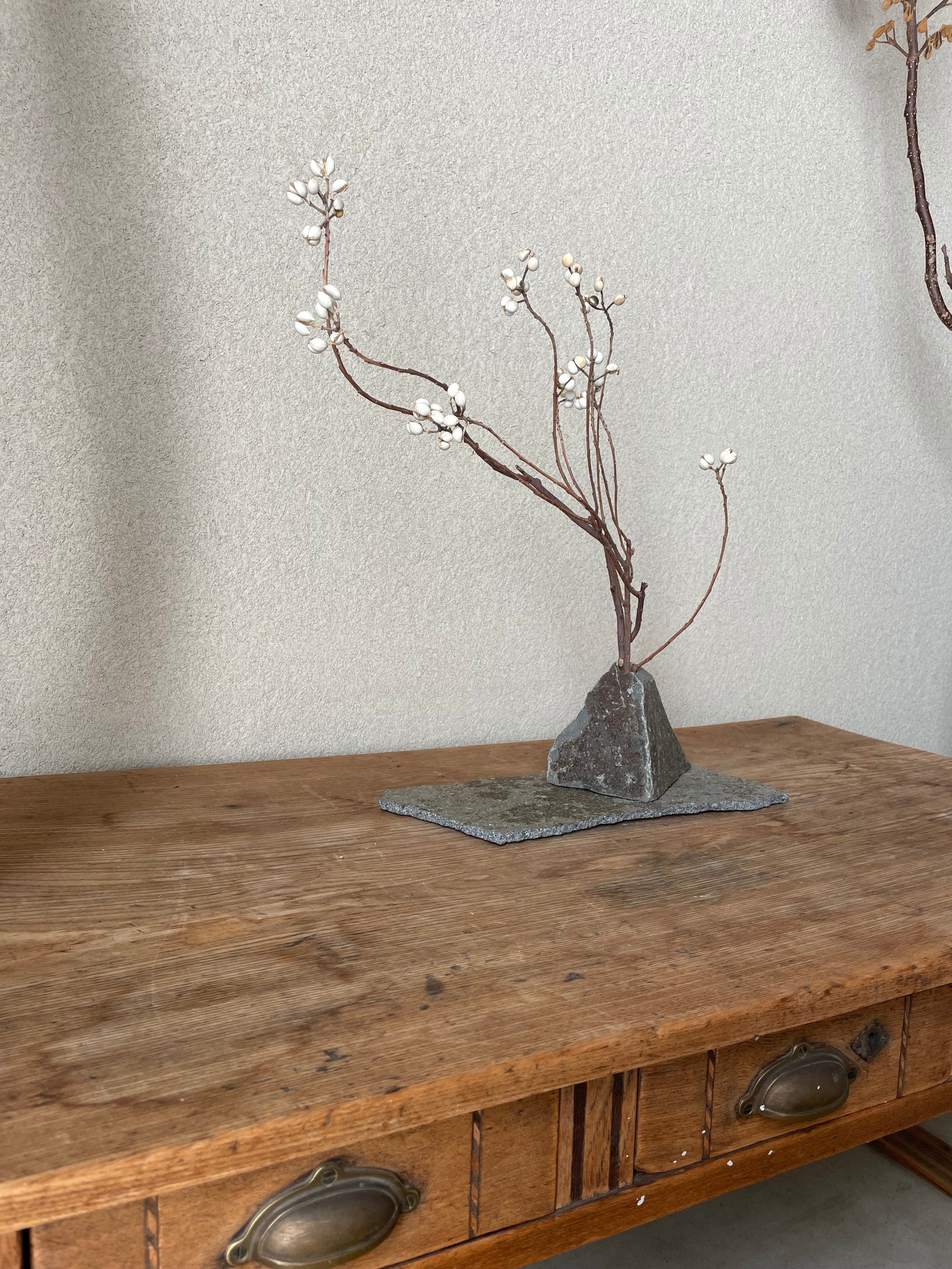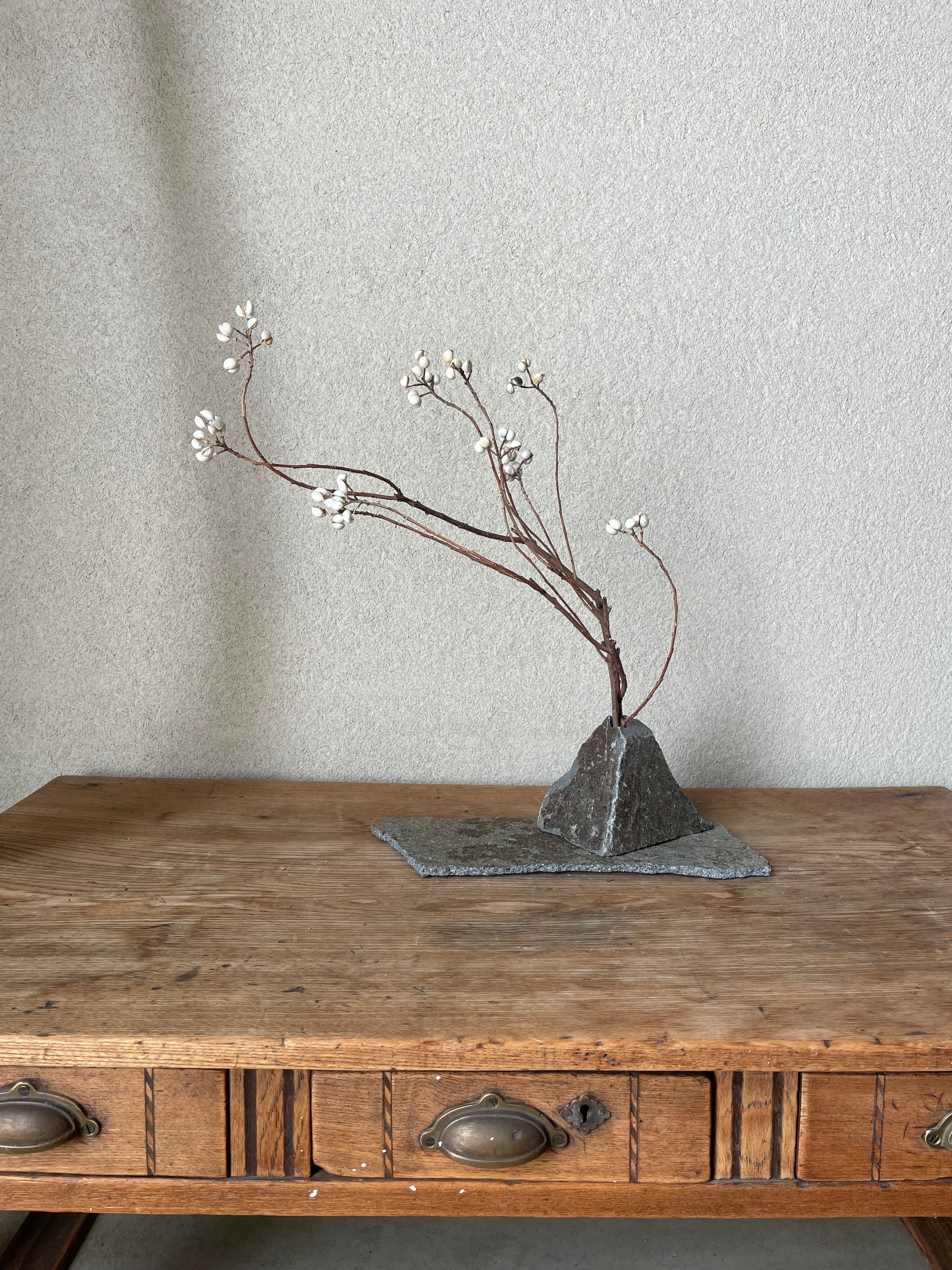 ### 商品名:122 石の花器・石の敷台・枝ものセット