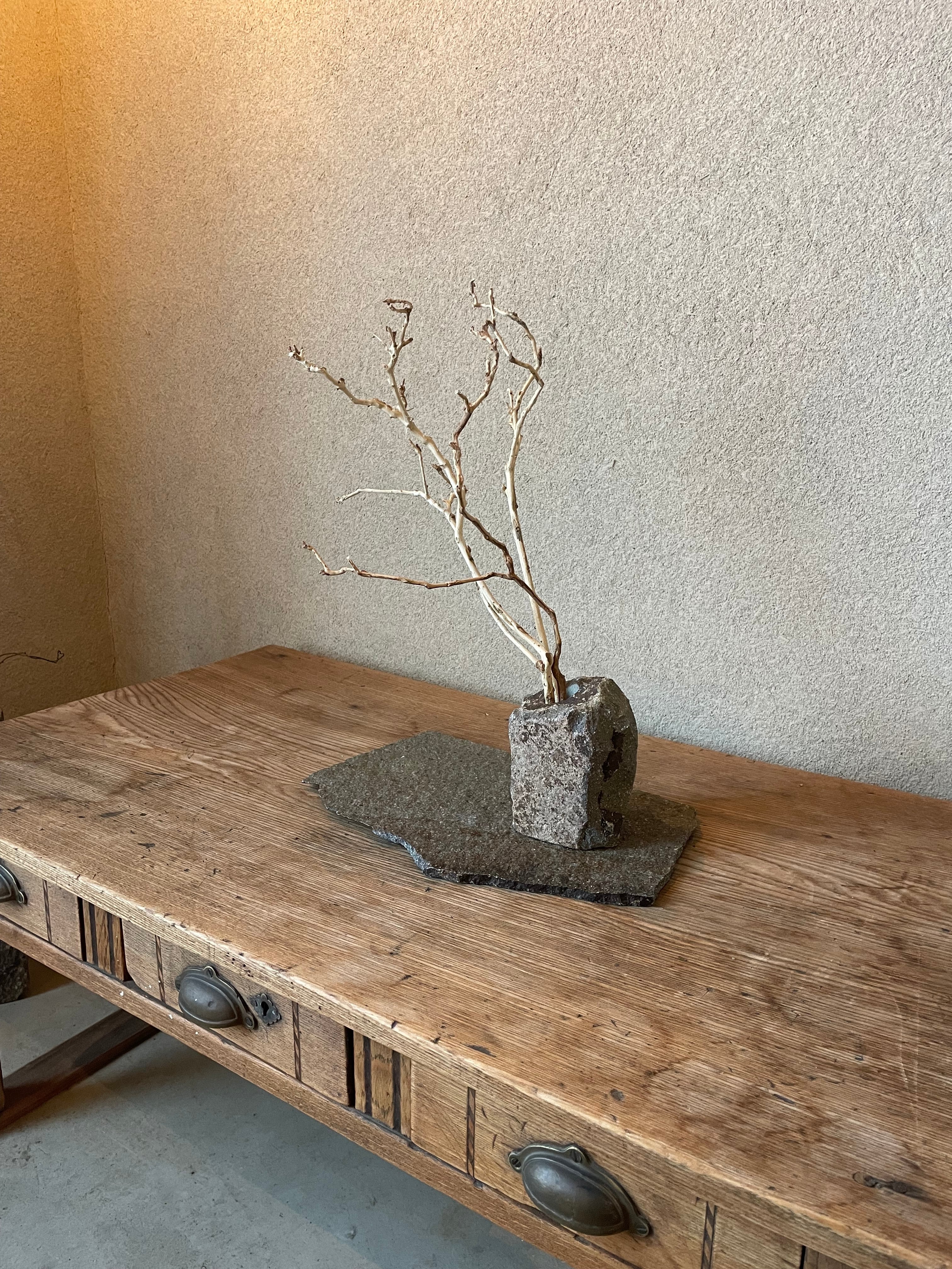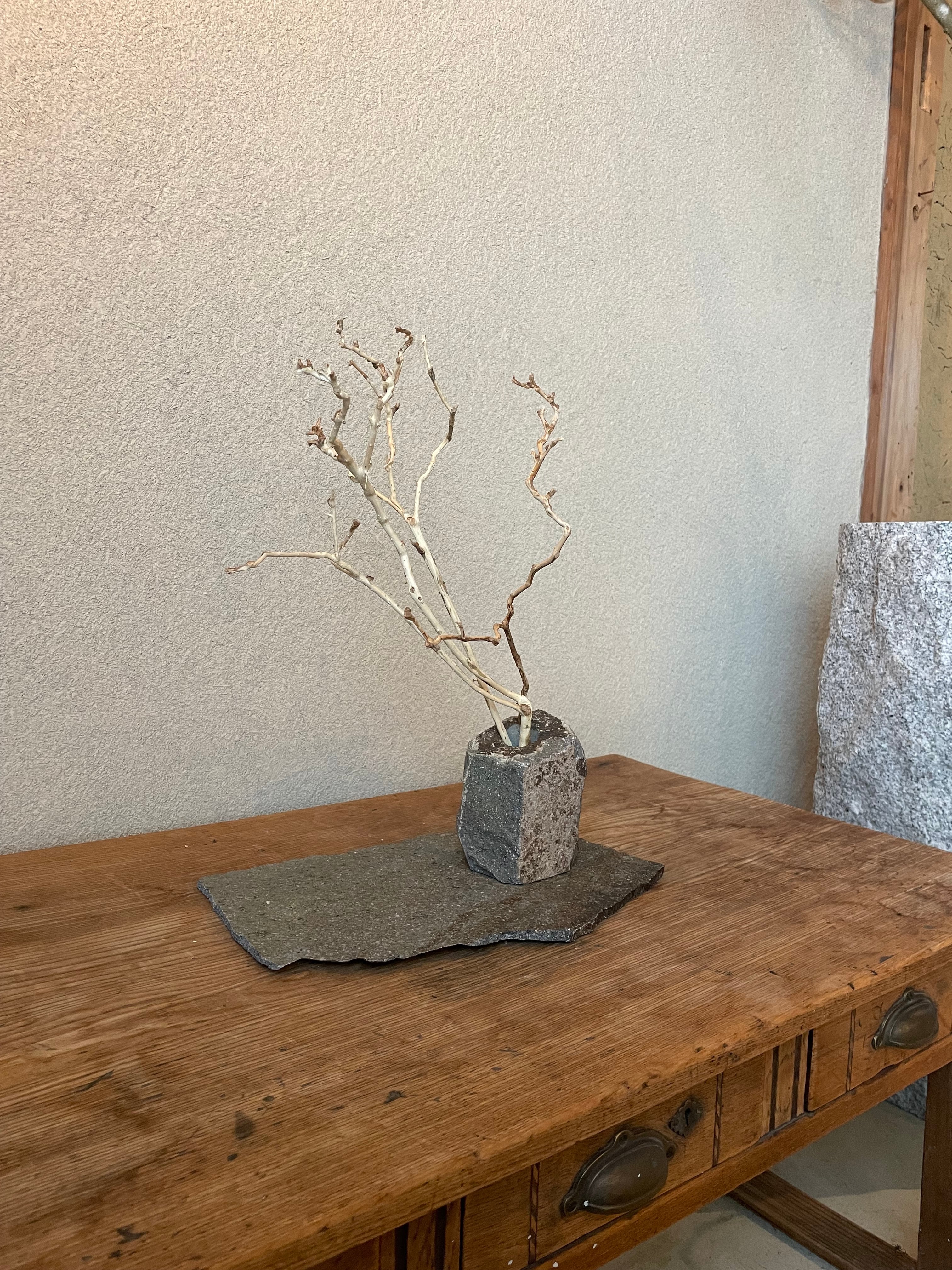 ### 商品名:125 石の花器・石の敷台・枝ものセット