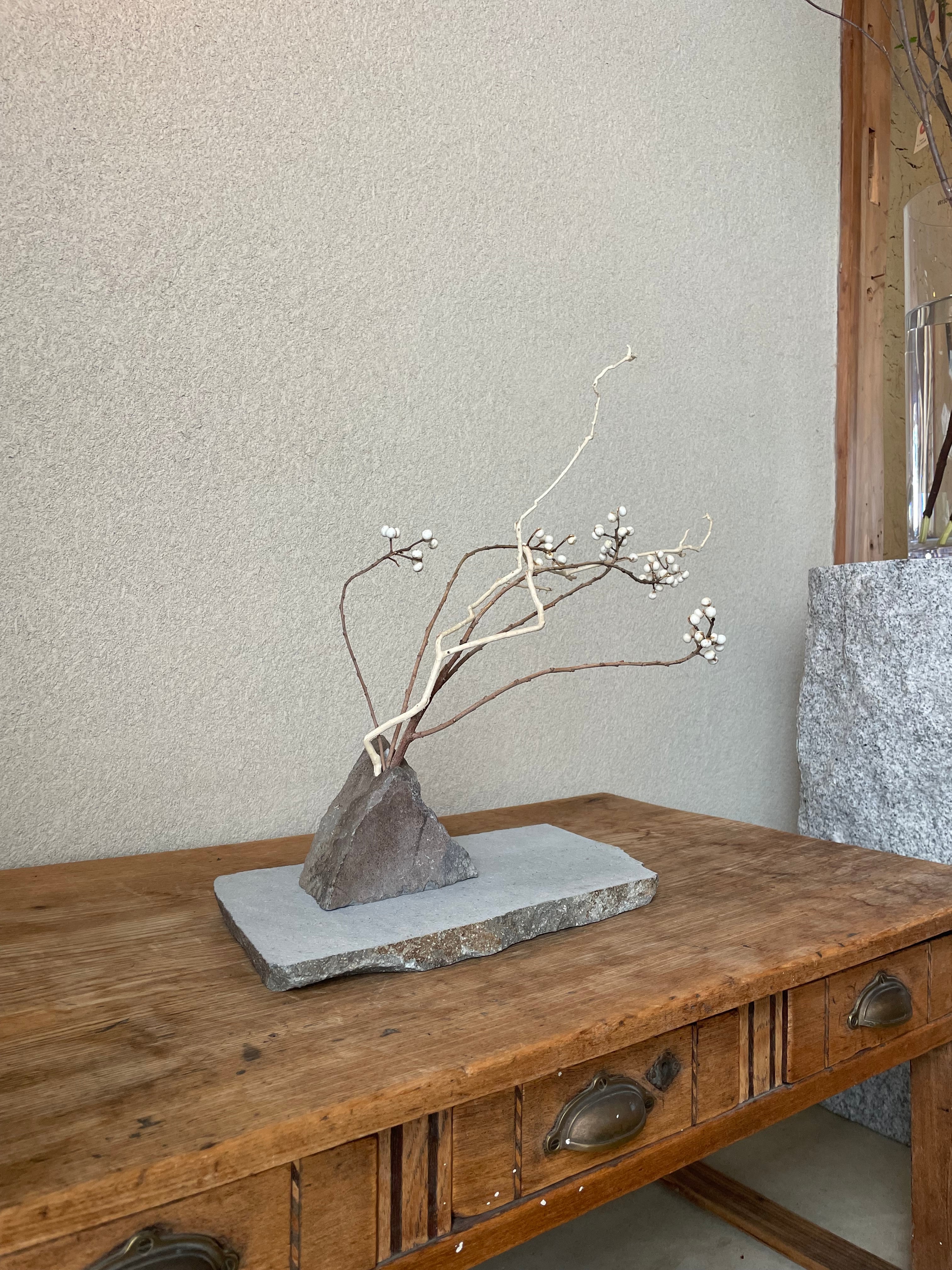 ### 商品名:146 石の花器・石の敷台・枝ものセット