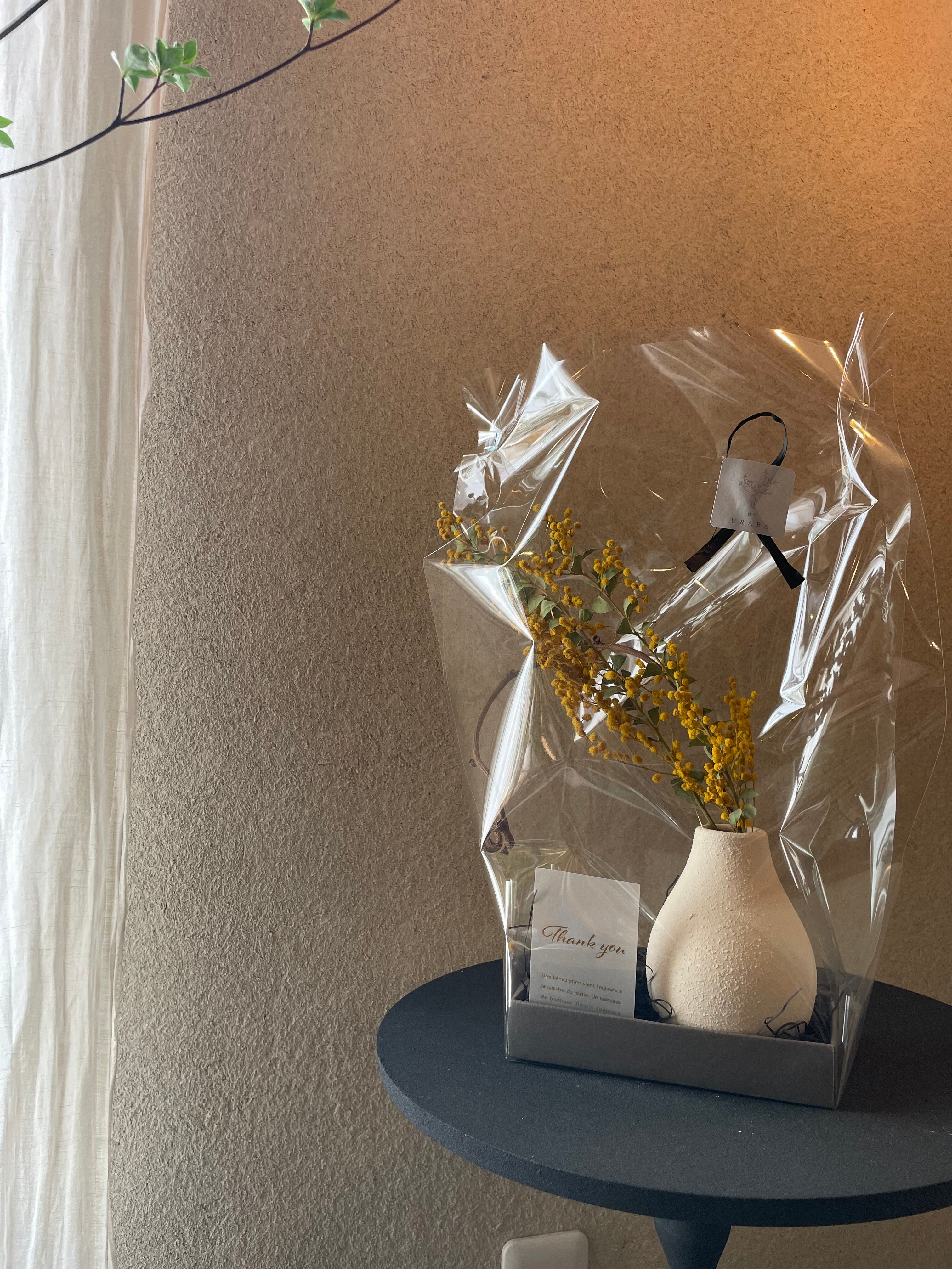 ※ミモザのお花が輸送中に多少落ちてしまう可能性がございます。特性上の事ですのでご了承ください。
